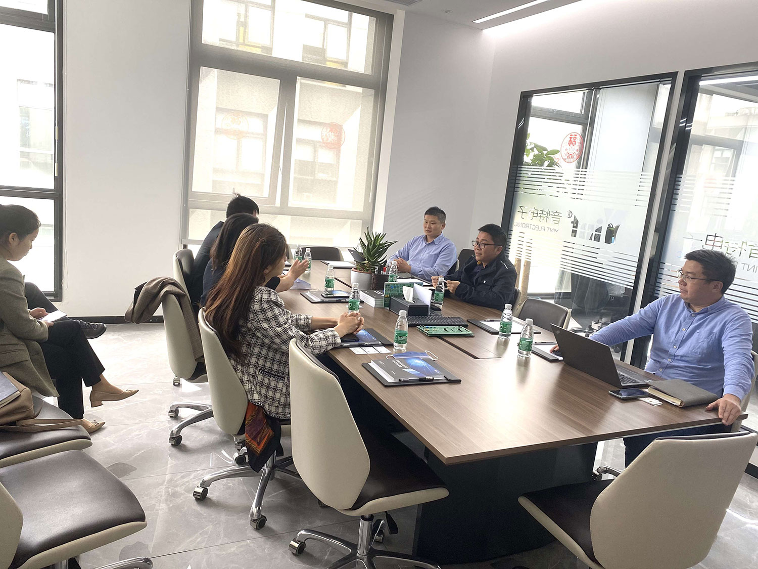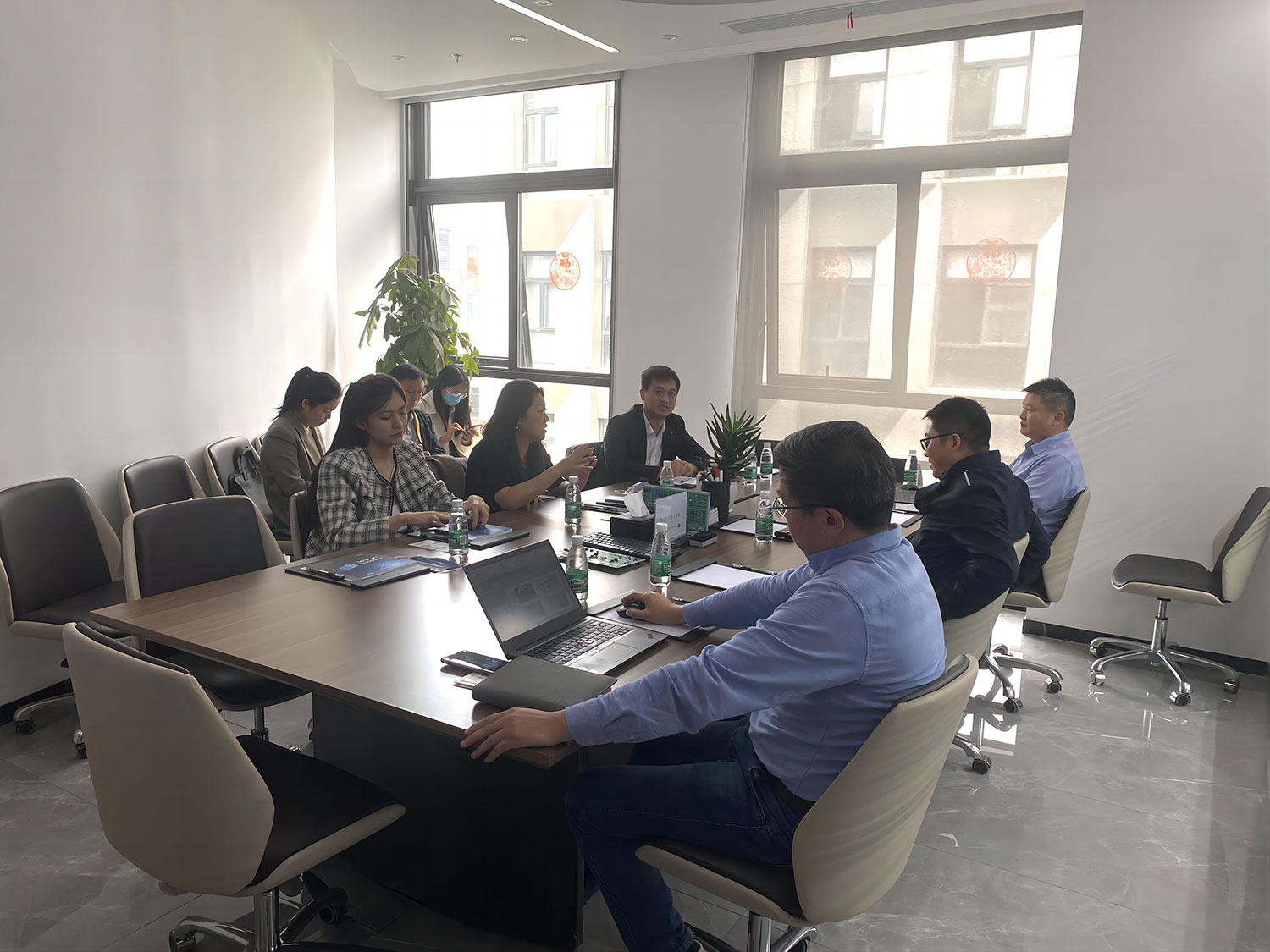 County Mayor Zhang and his delegation visited the company's office, laboratory, and storage areas in the East China region, and then had a friendly and cordial meeting in the company's conference room.