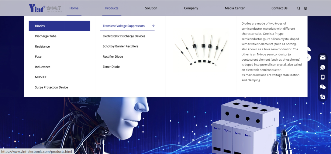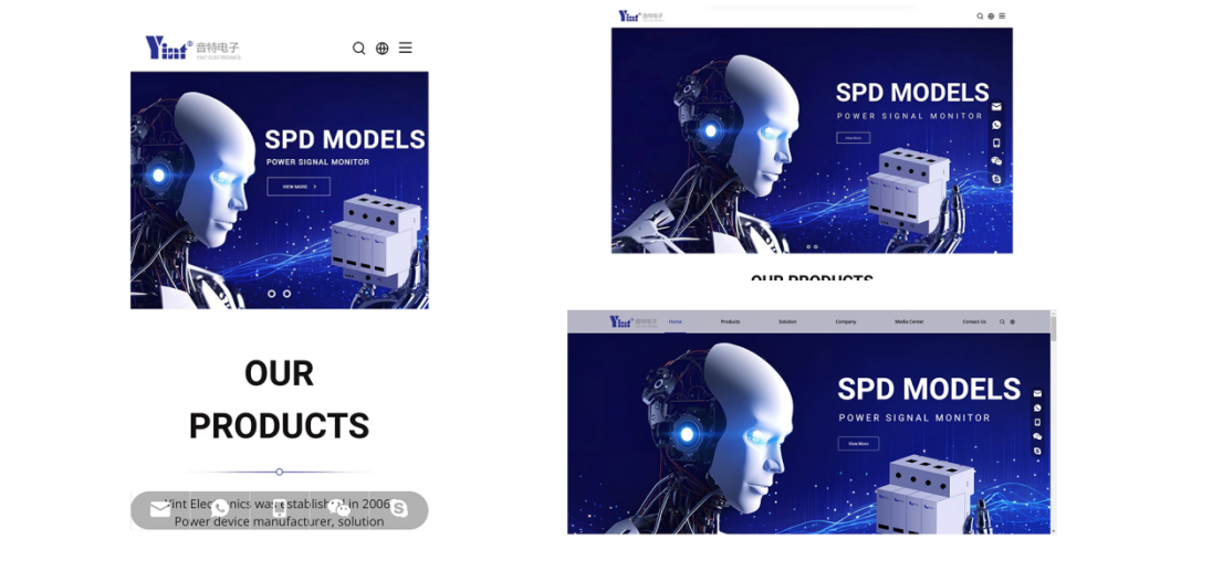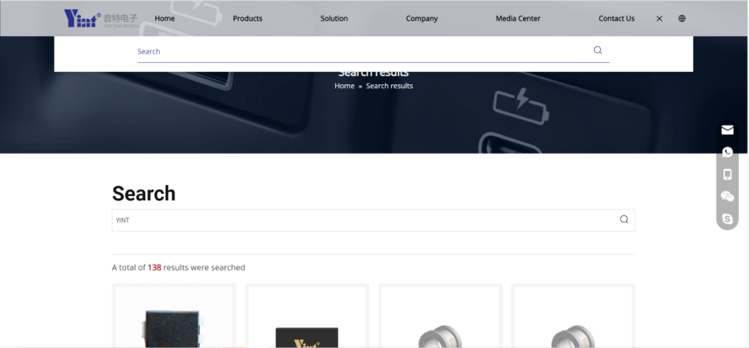 The website has undergone a complete restructuring of its structured content, dividing the main navigation bar into six sections: "Home", "Products", "Solutions", "Company", "Media Center", and "Contact Us". In terms of layout, each section has clear functions and highlights key points, presenting a more comprehensive display of Yinte Electronics' brand, products, technology, services, and other comprehensive strengths, facilitating users to obtain company product and service information more quickly.