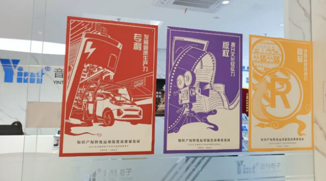 The theme of this year's Intellectual Property Awareness Week is "Promoting High-quality Development through the Transformation and Application of Intellectual Property". Yinte Electronics promotes the importance of protecting intellectual property to its employees by posting promotional posters and broadcasting slogans about intellectual property.