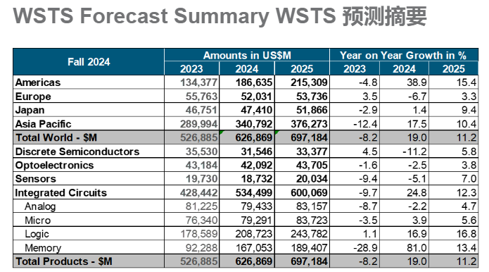 According to the World Semiconductor Trade Statistics Organization (WSTS), global semiconductor sales reached $627.6 billion in 2024, a year-on-year increase of 19.1%. The organization predicts that the growth rate of the global semiconductor market will fall back to 11.2% by 2025, and the global market valuation will reach approximately $697 billion