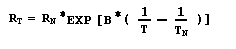 式中:RT、RN分别表示NTC在温度T(K)和额定额定温度TN (K)下的电阻值,单位Ω,T、TN 为温度, 单位K(TN(k)=273.15+TN(℃))。B,称作B值,NTC热敏电阻特定的材料常数(Beta)。由于B值 同样是随温度而变化的,因此NTC热敏电阻的实际特性,只能粗略地用指数关系来描述,所以这种方法只能以一定的精度来描述额定温度或电阻值附近的有限的范围。但是在实际应用中,要求有比较精确的 R-T 曲线。要用比较复杂的方法(例如用 The Steinhart-Hart 方程),或者用表格的形式来给定电阻/温度关系。