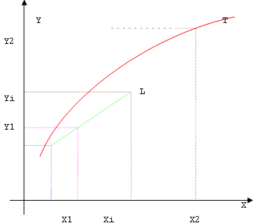 已知点(X1,Y1)和点(X2,Y2)求(Xi,Yi)。 由两点可以得到直线L 的方程