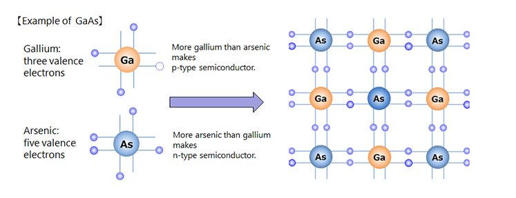 由几种元素制成的半导体称为化合物半导体,它们与硅半导体等由单一元素制成的不同。具体组合有元素周期表第III组和第V组、第II组和第VI组、第IV组等。