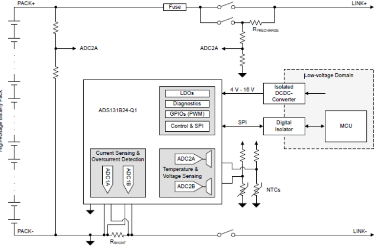 基于ADS131B24-Q1的电动汽车电池组监测系统方框图(图源:TI)