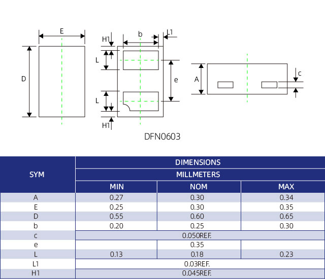 The ESDLLC5V0D06BH is a bi-directional ESD protection diode featuring ultra-low capacitance (~0.35pF typical) and fast response time. Designed in a compact DFN0603 package, it provides robust IEC 61000-4-2 protection (±20kV air, ±15kV contact) while maintaining excellent signal integrity, making it ideal for USB, HDMI, DisplayPort, PCIe, and other high-speed digital interfaces.