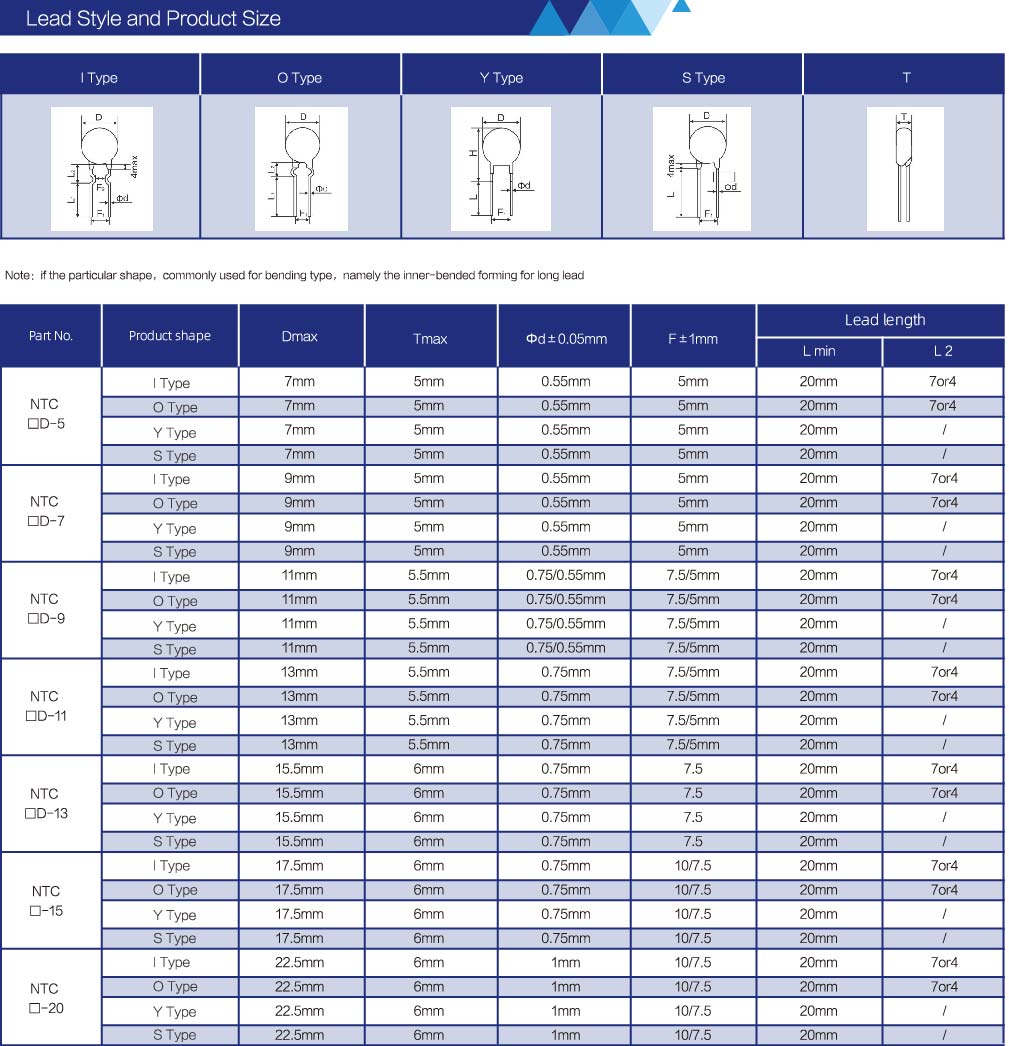 The 8D-5 NTC thermistor limits surge current at startup and improves the reliability of power supplies by providing protection for power circuits.