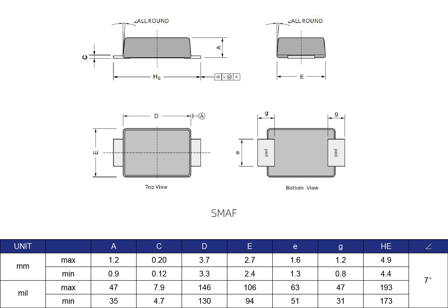 RS1MF is a low-profile fast recovery rectifier rated at 1000V and 1A in SMAF package. It features controlled recovery around 500ns, low junction capacitance of approximately 15pF, and strong surge tolerance of 30A, ideal for compact SMPS and high-voltage switching circuits.