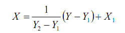 点(X1,Y1)和点(X2,Y2)为相邻两温度点,所以 X2-X1=1 那么由式上式可得: