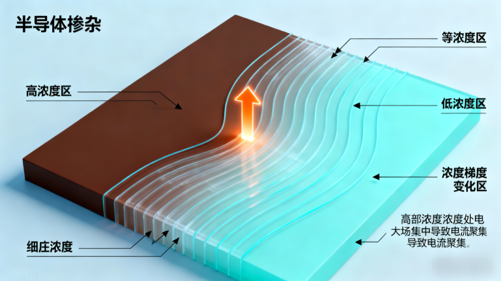 - Non-uniform doping leads to concentration gradients: If local areas have higher impurity concentrations during doping (e.g., uneven diffusion, ion implantation offset), a significant impurity concentration difference forms between these high-concentration areas and surrounding low-concentration areas.